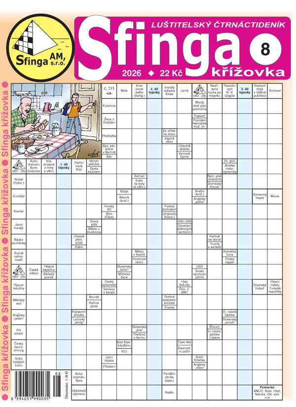 «Sfinga křížovka» vychází čtrnáctidenně, každou druhou středu, má šestnáct stránek, navíc je čtyřikrát ročně doplněna o tematický Magazínek, přinášející ještě šestnáct stran navíc, a o dvě dvojnásobná dvaatřicetistránková čísla. Cena normálního 16stránkového čísla je 22 Kč, cena čísla dvojnásobného nebo s Magazínkem 42 Kč. Ve «Sfinga křížovce» si nejen dobře zaluštíte, ale můžete se i leccos zajímavého dozvědět.